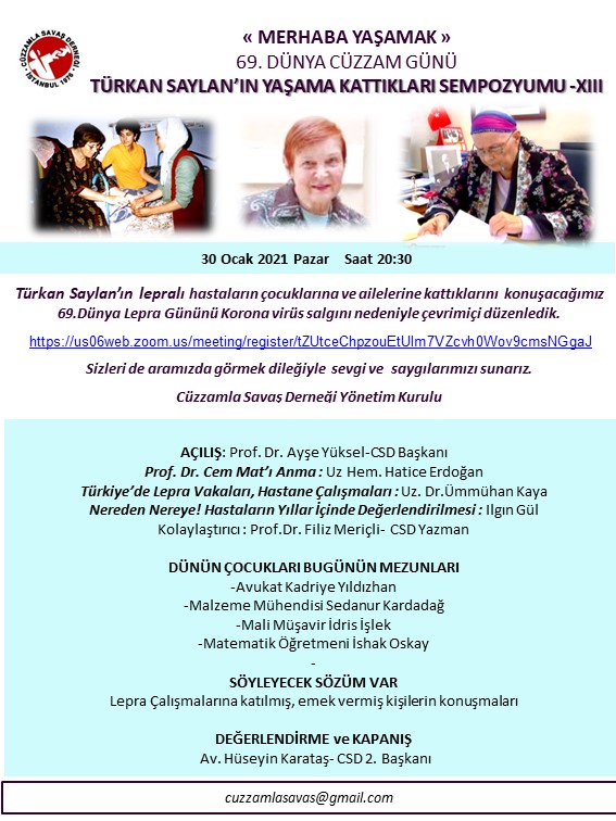 "Türkan Saylan'ın Lepralı Hastaların sosyal sorunlarına çözüm bulmaya yönelik kattıklarını" 71. Dünya Cüzzam Günü'nde konuşmak üzere bir araya geldik.