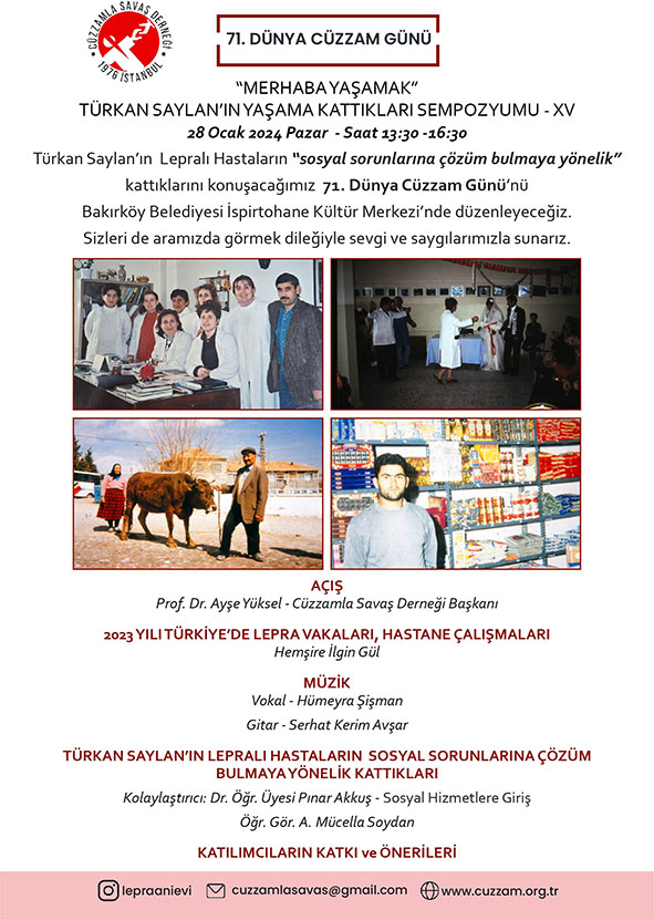 "Türkan Saylan'ın Lepralı Hastaların sosyal sorunlarına çözüm bulmaya yönelik kattıklarını" 71. Dünya Cüzzam Günü'nde konuşmak üzere bir araya geldik.