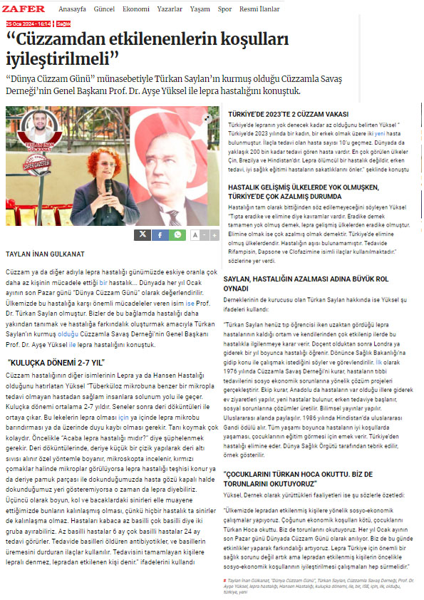"Türkan Saylan'ın Lepralı Hastaların sosyal sorunlarına çözüm bulmaya yönelik kattıklarını" 71. Dünya Cüzzam Günü'nde konuşmak üzere bir araya geldik.